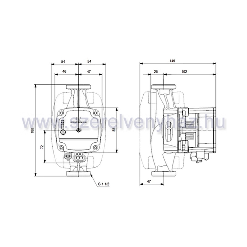 - Nyomóoldali csőcsatlakozás DNd: G 1½