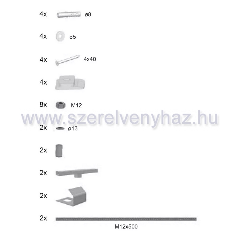 Készlet az előlap akril borításának rögzítéséhez a téglalap alakú kádakhoz.