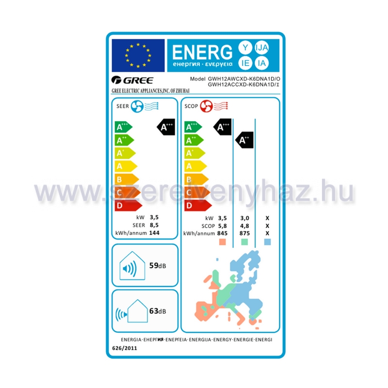 Energiaosztály: Hűtés A+++, Fűtés A++