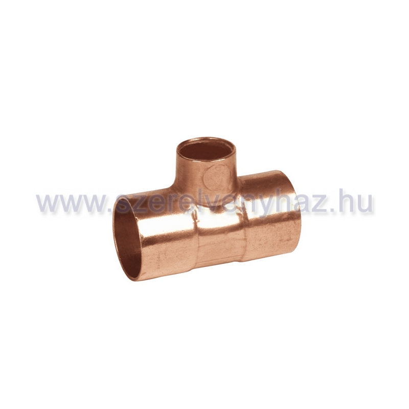 Forrasztható T-idom, vörösréz alapanyagból készült, 18 mm-es és 15 mm-es külső átmérőjű rézcsövekhez. Alkalmas ivóvíz- és fűtési rendszerekhez, csapadékvíz-elvezetéshez, sűrített levegős rendszerekhez és gázvezetékekhez.